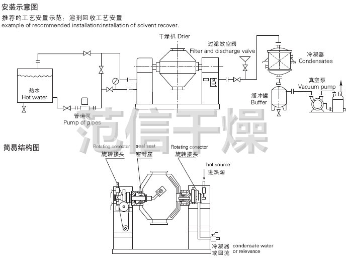 适用化工、制药、食品等行业的粉状、粒状及纤维的 浓缩、混合、干燥及需低温干燥的物料(如生化制品等).更适用于易氧化、易挥发、热敏性、强烈刺激、有毒性物料和不允许破坏结晶体的物料的干燥。